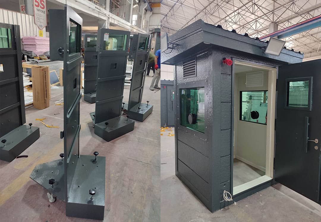 Türkiye’nin en büyük ticari ve askeri araç üreticilerinden BMC Otomotiv firmasının tesis güvenliği için kurşun geçirmez zırhlı güvenlik kabini üretimi yapıldı. BMC Otomotiv’in Kahramankazan tesisleri için 3 Adet 150x150 ve 1 Adet 200x200 ölçülerinde zırhlı kabinler üretildi ve sevk edildi adet zırhlı siperlik ürününü de hazırlandı. Proje kapsamında ayrıca 2’şerli set şeklinde 6 adet zırhlı siperlik hazırlanmıştır. Bu kurşun geçirmez zırhlı kabin modelleri ölçüleri ne olursa olsun BR7 cam koruma seviyesi ve Hardox 500 aşınma çeliği ile üretilmektedir.